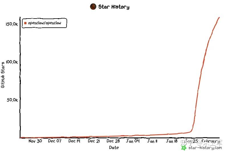 OpenClaw刷新了github上星最快的纪录,不到一个月获得了15万star,确实有些疯狂,比 ollama、n8n等明星AI项目都快的多。