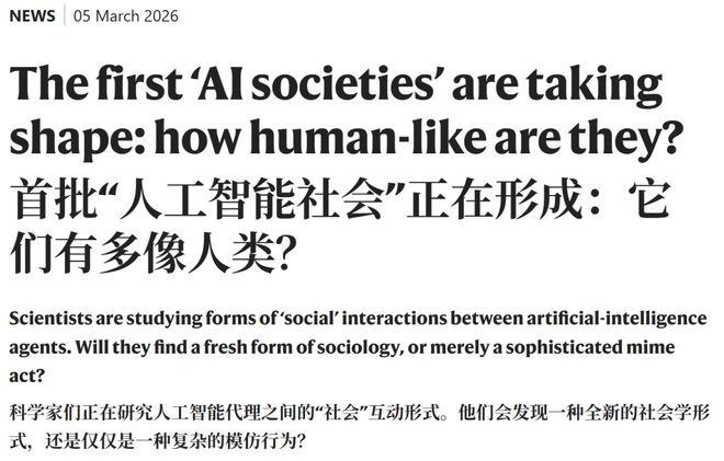 3月5日,Nature的一篇社论文章就在追踪这种「AI社会」萌芽。