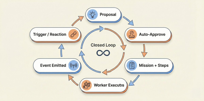 测试时我发现:触发器正确地检测到了条件并创建了提案。但提案永远处于待定状态——从未变成任务,从未生成可执行步骤。