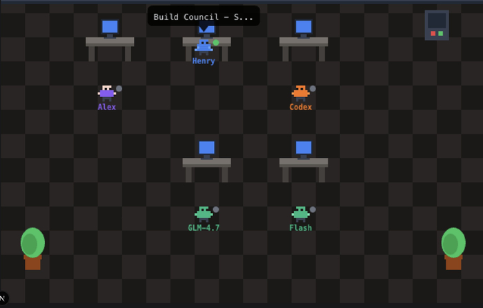 这个项目叫做VoxYZ Agent World:6个AI智能体在一个像素风办公室里自主运营一个网站。